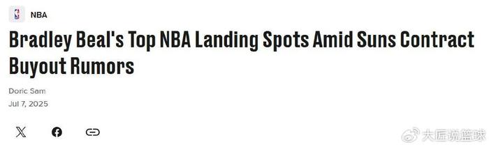 消息最先由名记Marc Stein和Jake Fischer联合曝出,休赛期至今,太阳队不断兜售比尔,但始终没有找到合适的交易,随着各方谈判破裂,太阳买断比尔的可能性越来越大。