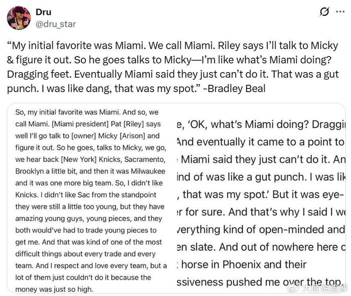 同时披露部分细节,比尔实际上希望留在太阳队,但后者坚持希望他离开。